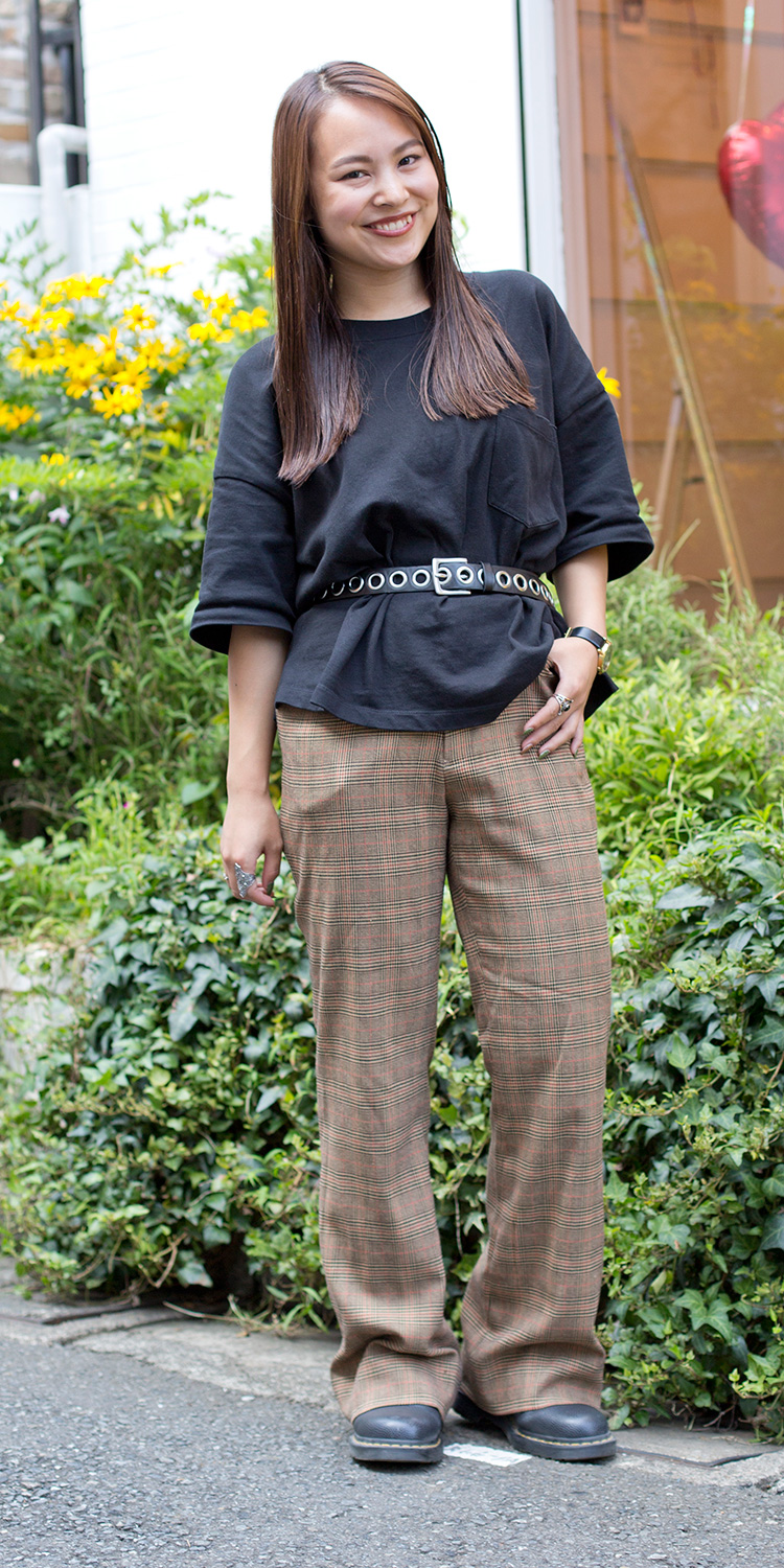 ビッグシルエットのTシャツにロングスリーブを合わせてトレンド感を。 好きなグリーンを差し色に入れました。