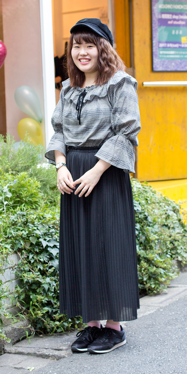 アシンメトリーなロングスカートで秋っぽさを出した。